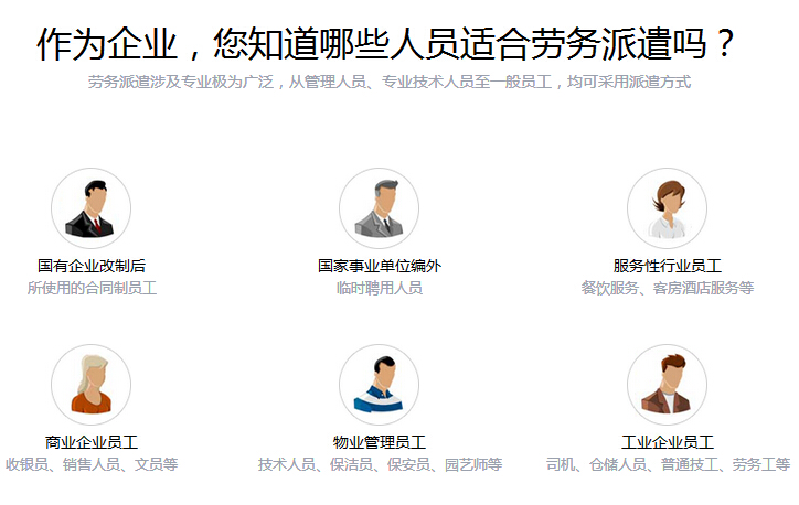 一鸣提供专业劳务派遣协议方案、代办录用、岗前培训及劳动合同签定、员工档案管理、代缴社会保险、员工薪资发放、专业人员后勤管理、不符合岗位要求员工及时更换、退工手续办理、代理劳务纠纷、定期企业回访及后期跟踪管理。